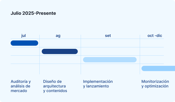 Tras el lanzamiento, monitorizamos la indexación de las nuevas páginas, analizamos el comportamiento del tráfico, y fuimos optimizando según los datos que recogíamos. Los resultados empezaron a verse en las primeras semanas y siguieron creciendo mes a mes.